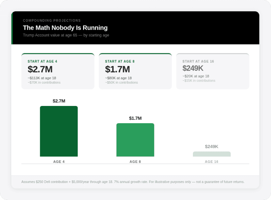 The $1,000 government seed is real. Deposited at birth for children born between January 1, 2025 and December 31, 2028. If your child was born before 2025, they don’t qualify.